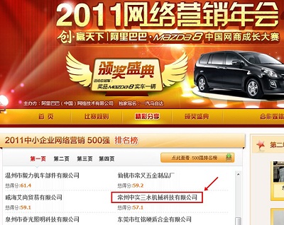 我公司被評為阿里巴巴2011網絡營銷500強第22名